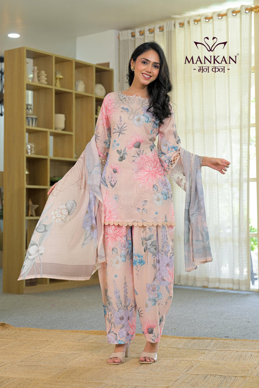 Chinon Set's Floral Print Kardana Work With Dupatta Chinon