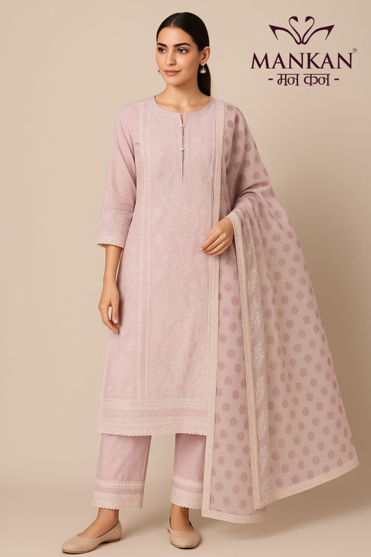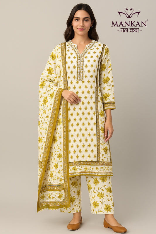 Cotton Kurta Set's Resham thread work with dupatta