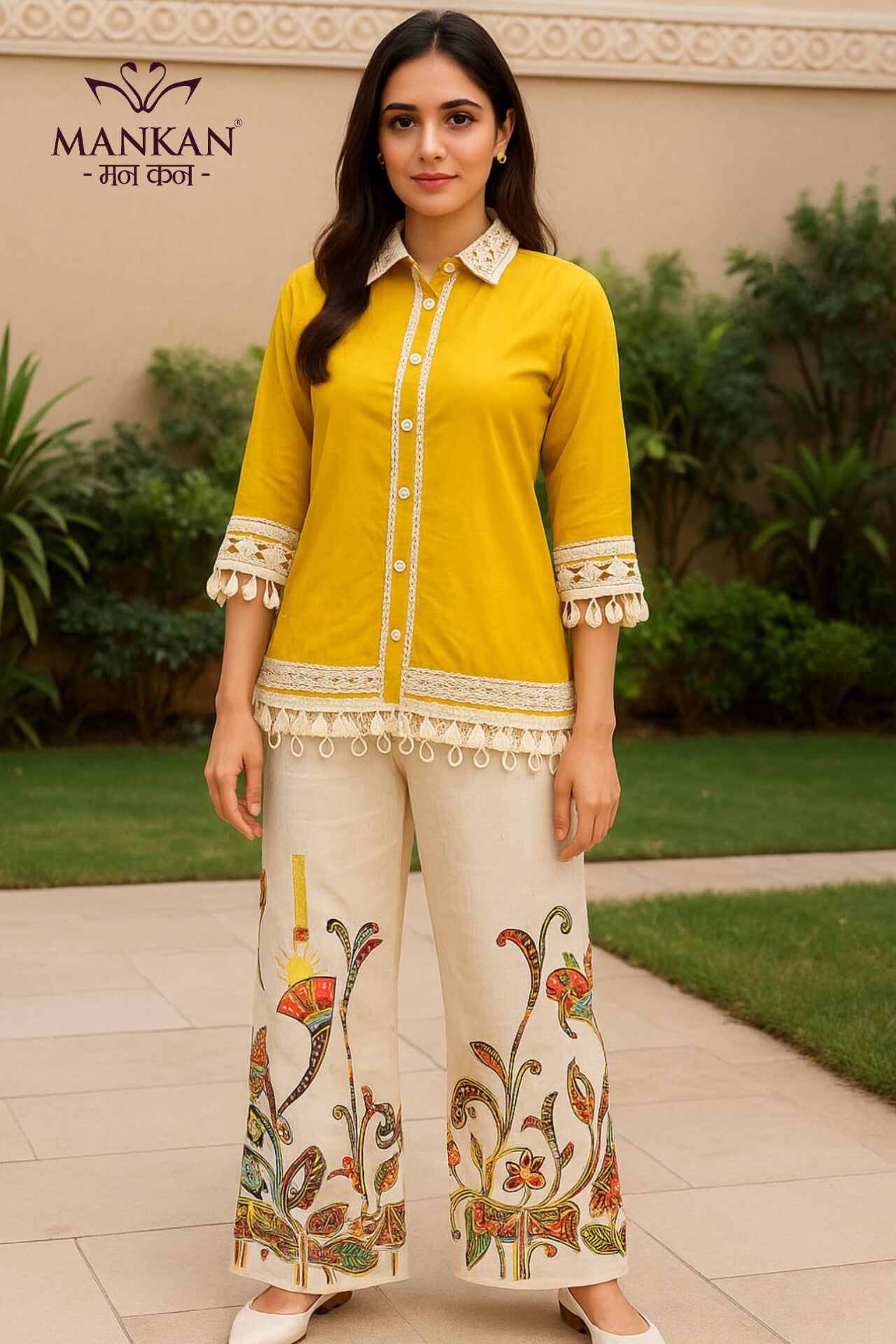 Cord Set With Lace With Mirror Work